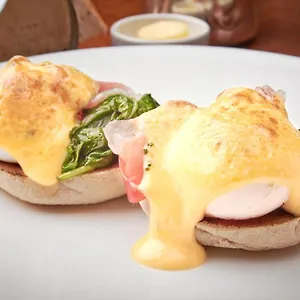 There are British dishes in the menu of Garden Room restaurant at the accommodation.